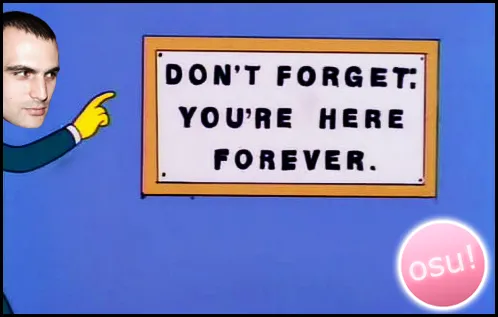 a lot of people spend their days reflecting on wasted time. for most, osu! looks exactly like such. it’s a game built around repetitively retrying to set scores by clicking and aiming on pre-defined note placements. personally, when reflecting like this, i think about what other skills i could’ve developed in this time. i could’ve been a better developer, a better musician, a better editor, better read, even better at a more relevant game. every single time when asked if i would’ve traded it away, its hard to say anything but no. while not solely responsible, osu! — especially the connections it’s made me — has made me who i am today. i don’t think i could ever think to reverse any of the time spent, because while it’s taken me a while to actually admit it, i am proud of what i’ve accomplished in osu!. while i wouldn’t exactly want my offspring to be completely enveloped in it’s grasp, i thank osu! for a lot in who i am and how i see the world today. it’s getting very messily sappy, so i’ll end with a thank you to the game, a thank you to osu!, and a thank you to you for feigning interest long enough.